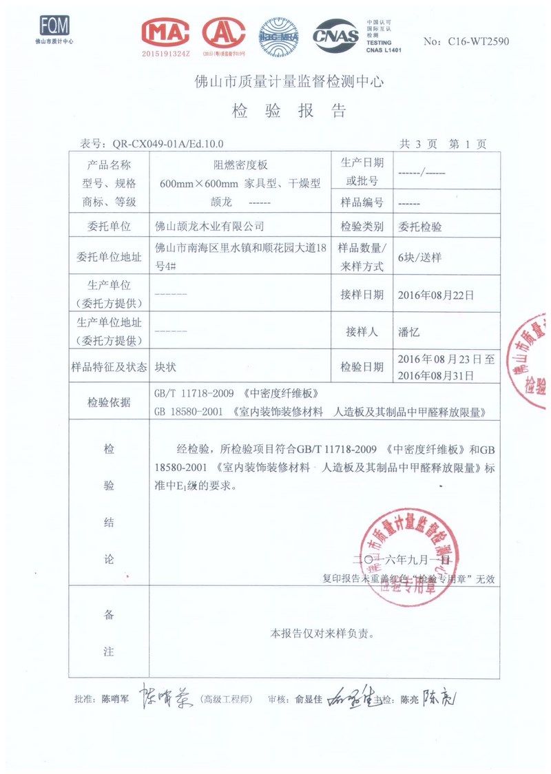 廣東廠家英標BS476防火檢測B級阻燃密度板 低甲醛環(huán)保P2級中纖板